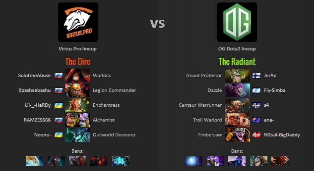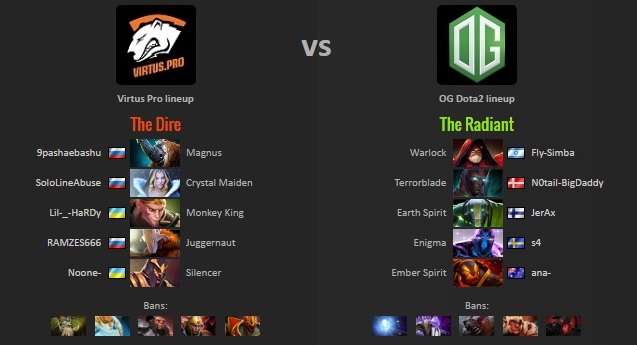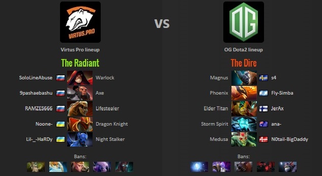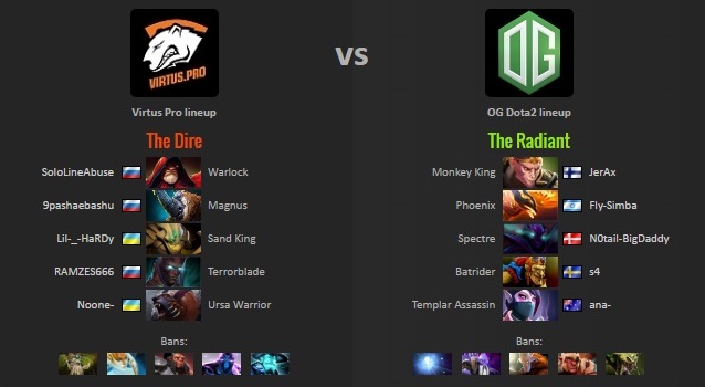 โดยทั้งคู่แข่งกันอย่างสูสีถึง 5 เกม โดยเป็น VP ที่ขึ้นนำก่อน 2 – 1 เกมและเป็น OG ที่สามารถ comeback กลับมาเอาชนะไปได้ในที่สุด 2 – 3 เกมคว้าแชมป์ทำให้ OG ที่เคยคว้าแชมป์ที่ the Frankfurt และ Boston Eagle Song trophiesรวมถึง Manila Major River, และตอนนี้เป็น the Mystic Staff, ทำให้พวกเขาขาดเพียง The Aegis of the Immortals ในการแข่งขัน The International เท่านั้น !!