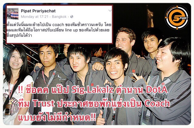 เรียกได้ว่าตกใจกันไปสำหรับแฟนๆของทีม Signature.Trust และแฟนๆ DotA2 ชาวไทยทั้งผองเมื่อตำนานที่ยังโลดแล่นอยู่เพียงหนึ่งเดียว ในฐานะหนึ่งใน Carry ที่ดีที่สุดของAsia ผู้แบกความหวังสูงสุดของชาวไทยในการนำธงชาติไทยไปโบกในงาน The International อีกครั้งอย่าง “เบส” พิพัฒน์ carry ขาโหดเบอร์1 ของไทย หรือที่พวกเรารู้จักกันในนาม “Lakalz”ที่แม้แต่ Burning ยังยอมรับในความสามารถในการ farm และ การปิดเกม ได้ประกาศบน facebookของตัวเองว่า จะขอย้ายมาทำหน้าที่โค๊ชของทีมแทน เพื่อเปิดโอกาสให้ทีมได้ปรับเปลี่ยน Line up กันใหม่ พร้อมคำทิ้งทายที่น่าใจหายสำหรับแฟนๆอย่างพวกเราว่า ” ถ้าทีมลงตัวผมคงจะเป็น Coach ยาวๆ” แถมยังทำให้ตกใจกว่าเดิมคือบอกว่าถึงแม้ผลงานไม่ดีก็อาจจะพิจารณาหาคนใหม่มาแทน หรือ จะกลับมาเล่น ขอคิดก่อน