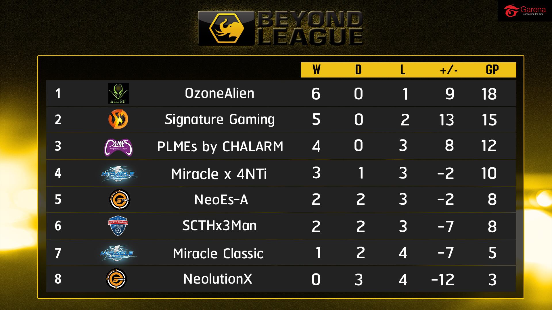 OzoneAlien เป็นที่ 1 รอบจัดอันดับนั้นหมายความว่าเค้าจะได้ไปแข่ง Beyond League Season 2 ต่อทันที !