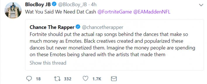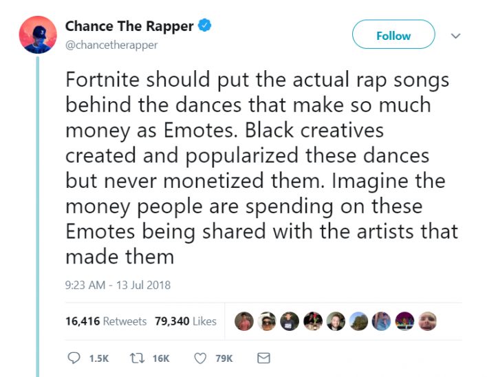แต่ล่าสุดดูเหมือนเราจะได้เห็น “รอยร้าว” เล็กๆอันแรกระหว่าง Rapper ชื่อดังกับทีมงาน Fortnite หลัง Chance the Rapper ออกมาระบุว่าทีมงาน Epic Games สมควรจะจ่ายเงินให้เหล่าศิลปินผู้อยู่เบื้องหลังท่าเต้น Emote ภายในเกม