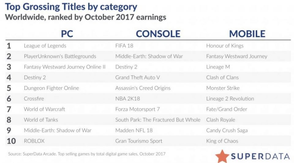 เดือนตุลาคมปี 2017 ถือว่าเป็นเดือนที่ยิ่งใหญ่มากสำหรับ PUBG เพราะมันเป็นเดือนที่เกมนี้ทำรายได้แซงเกมในตำนานได้หลายเกมด้วยกัน ทั้ง WoW, Crossfire 2 และ Destiny 2 ถึงจะไม่สามารถแซง League of Legend ของทาง Riot ได้ แต่ก็ถือว่าเป็นช่วงเวลาทองของเกมน้องใหม่อย่างแท้จริง