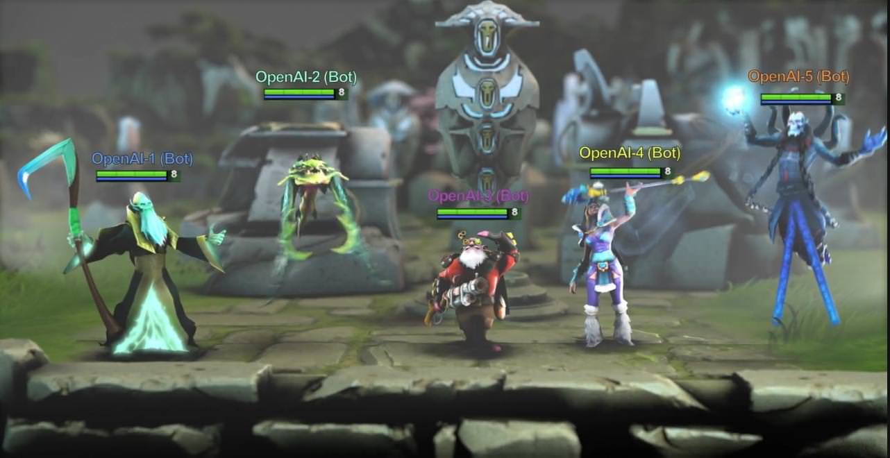 ล่าสุด ทีม OpenAI ซึ่งได้รับเงินสนับสนุนจาก Elon Musk ได้เปิดตัว OpenAI Five AI สำหรับการเล่นแบบ 5-5 ซึ่งในขณะนี้สามารถเอาชนะผู้เล่นระดับสมัครเล่นได้เป็นที่เรียบร้อยแล้ว โดยทีมงานจะจัดการแข่งขันระหว่าง OpenAI Five กับทีมผู้เล่นมืออาชีพในวันที่ 28 กรกฎาคม 2018 นี้ซึ่งจะมีการถ่ายทอดสดผ่าน Twitch
