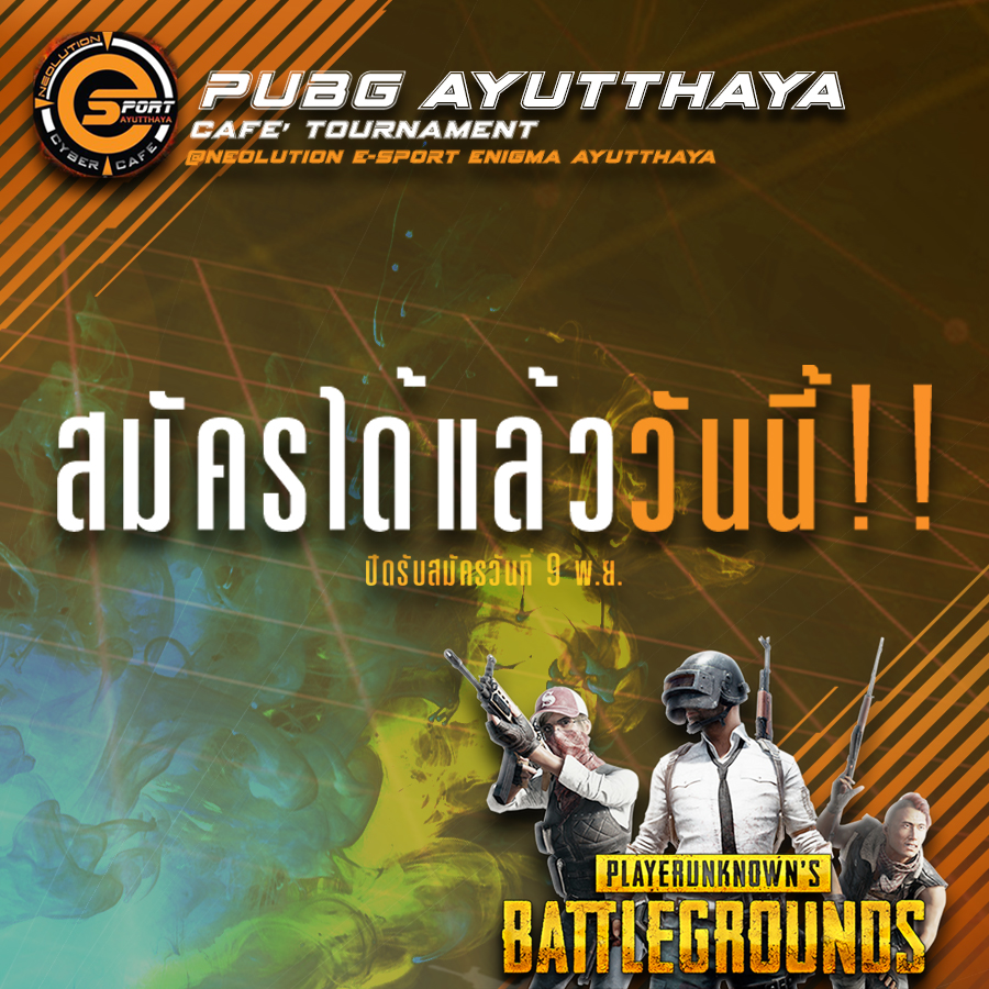 ต้อนรับ Neolution สาขาใหม่พระนครศรีอยุธยา ด้วยทัวร์นาเม้นท์แรกของร้าน กับเกม Player Unknown’s Battleground หรือ PUBG นั่นเองชิงเงินรางวัลรวมมูลค่ากว่า 10,000 บาท โดยจะเริ่มการแข่งขันในวันที่ 11 พฤศจิกายน 2561 นี้ ที่ร้าน Neolution Esport Enigma Ayutthaya