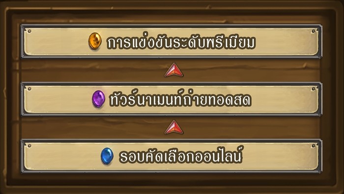 Hearthstone จะจัดการแข่งขันทัวร์นาเมนท์รอบคัดเลือกนับร้อยรายการ โดยจะเน้นการแข่งขันทางออนไลน์เป็นหลัก พร้อมกับร่วมมือกับพันธมิตรแพลตฟอร์มการแข่งขันจากภายนอก การแข่งขันรอบคัดเลือกครั้งแรกจะเริ่มต้นในฤดูใบไม้ผลิ และการแข่งขันเหล่านี้จะไม่มีการล็อคภูมิภาค นั่นหมายความว่าผู้เล่นจากทุกที่ทั่วโลกจะสามารถเข้าร่วมการแข่งขันได้ตามเวลาที่สะดวก ผู้ที่ชนะรอบคัดเลือกจะได้สิทธิเข้าร่วมการแข่งขันระดับถัดไป