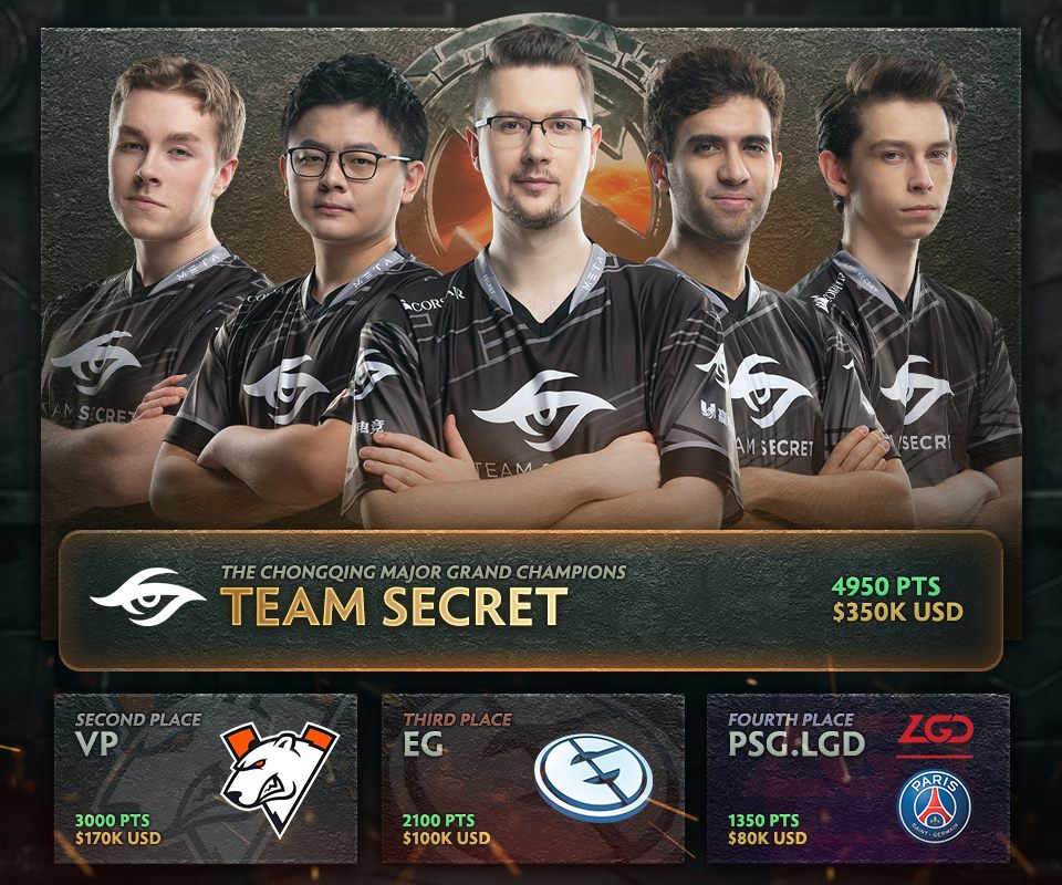 จบลงไปกับการแข่งขัน Major ที่ 2 ของฤดูกาลใหม่ในการเก็บแต้ม DPC เพื่อสิทธิ์เข้าสู่การแข่งขัน The International 2019 ที่เซี่ยงไฮ้ประเทศจีน Chongqin Major กับเงินรางวัลรวม 1,000,000 เหรียญกับแต้ม DPC อีก 15,000 แต้ม