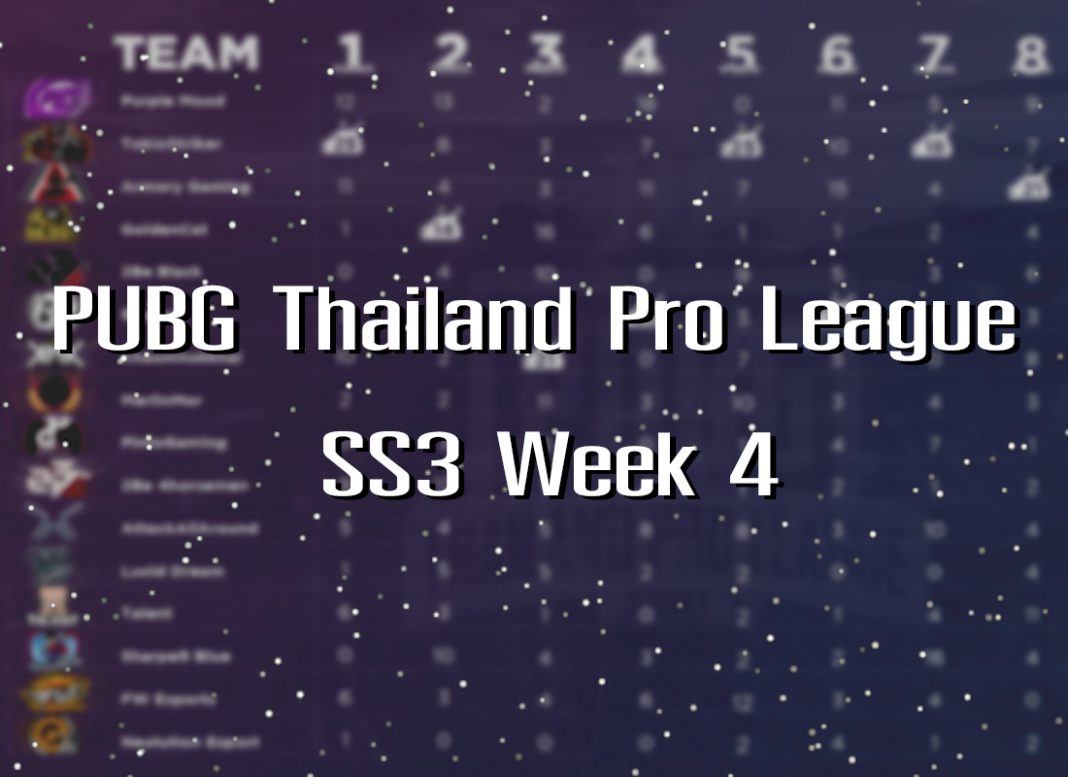 จบไปแล้วครับกลับการแข่งขัน PUBG Thailand Pro League SS3 Week 4 เป็นวีคที่เริ่มแข่งหลังจาก จบครึ่งแรกไปนั้นเอง เพราะในครึ่งหลังก็จะมีการได้ให้แต่ละทีมทำการเปลี่ยนตัวนักกีฬาที่ใช้ในการแข่งขันเพื่อเพิ่มประสิทธิภาพของทีมตัวเองให้เพิ่มมากขึ้นนั้นเอง และแต่ละทีมก็ไม่ทำให้ผิดหวังเลย โชว์ผลงานกันได้อย่างดุเดือดมากทำให้ เป็นสัปดาห์ที่สนุกมากๆเช่นกัน และอันดับของแต่ละทีมจะเป็นยังไงเดะเราจะมาบอกกันเลยจ้า และแชมป์ในแต่ละรอบด้วยนะครับ